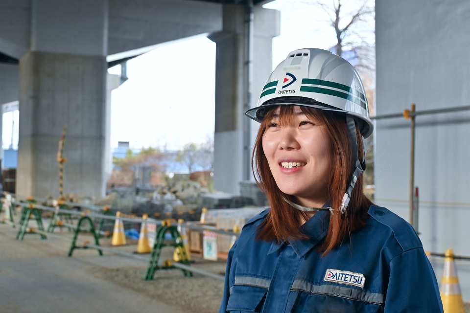 福利厚生の充実に加え、女性が現場で活躍している実績が安心感につながっています。土木部門では「大鉄小町」という女性社員の働きやすさ向上を目的とした取り組みを実施。女性同士がつながり、意見を会社へ届けられる体制も整えています。未経験や女性という立場に不安を感じる方も、安心して長く働ける環境です。