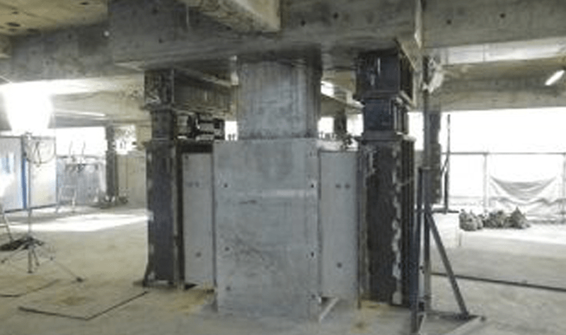 大鉄免震レトロフィット工法は、既存の柱等を切断・撤去して免震装置挿入する際、建物の重量を仮に支える仮受部材を設置することで、工事期間中の建物使用を可能とする工法です。