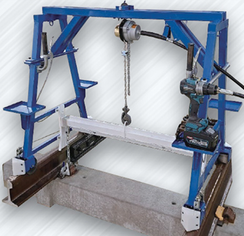 多数のレール吊り上げ器を用いた人力でのレール入れ替えが不要。