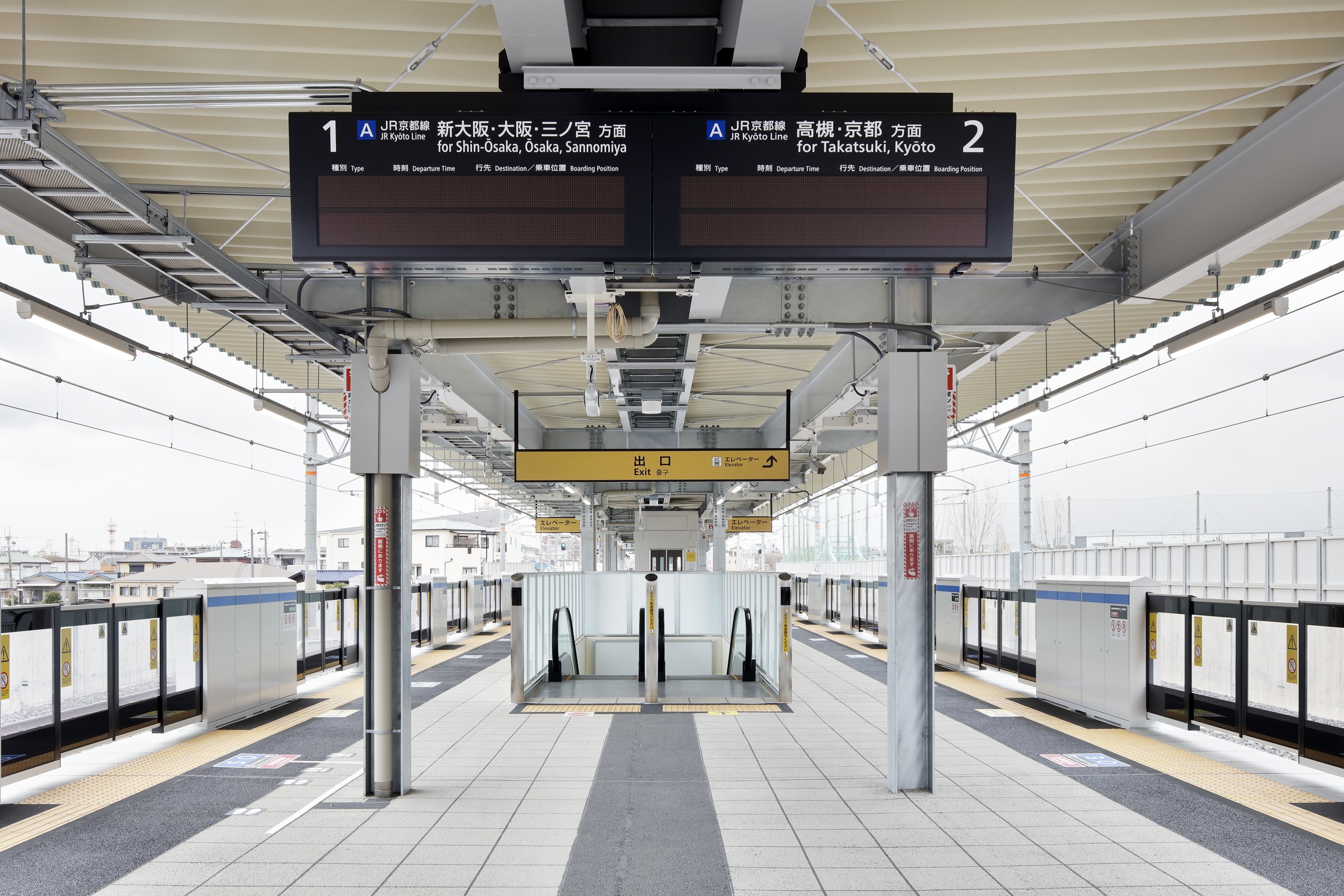 本工事は、摂津富田・茨木駅間(539k740m付近)において新駅を設置するものです。延長540mの区間において、ジオテキ盛土により線路盛土の拡幅を行い、上下線において線路を外側に1線ずつ振り、島式ホームを設置しています。また、線形の変更に伴い府道との交差部の架道橋の改築を行いました。