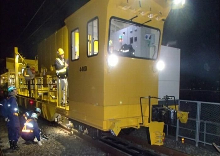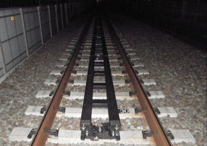 平成16年10月の新潟県中越地震発生時に走行中の新幹線車両が脱線した事象を踏まえ、地震等による車両脱線時の減災対策を講じることを目的に、山陽新幹線の軌道内にガードレールを設置する工事です。新大阪~姫路間上下線の明かり区間とトンネル内の一部について敷設を行い、平成23年10月の着工から約4年半を経て完成させました。