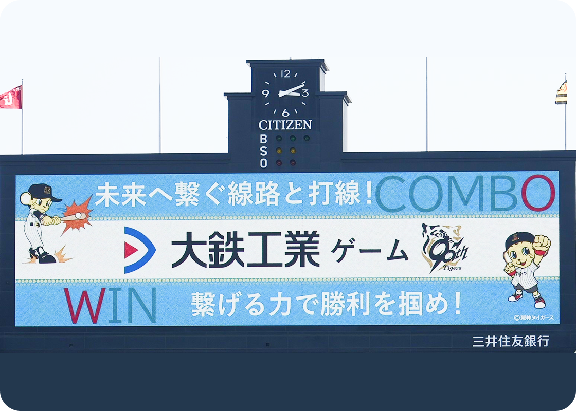 阪神タイガースは、兵庫・西宮にある「阪神甲子園球場」を本拠地とするプロ野球球団です。2025年に球団創設90周年を迎え、野球を通じて全国に活力を届け続けています。大鉄工業はレギュラーパートナーとして、阪神タイガースを応援しています。