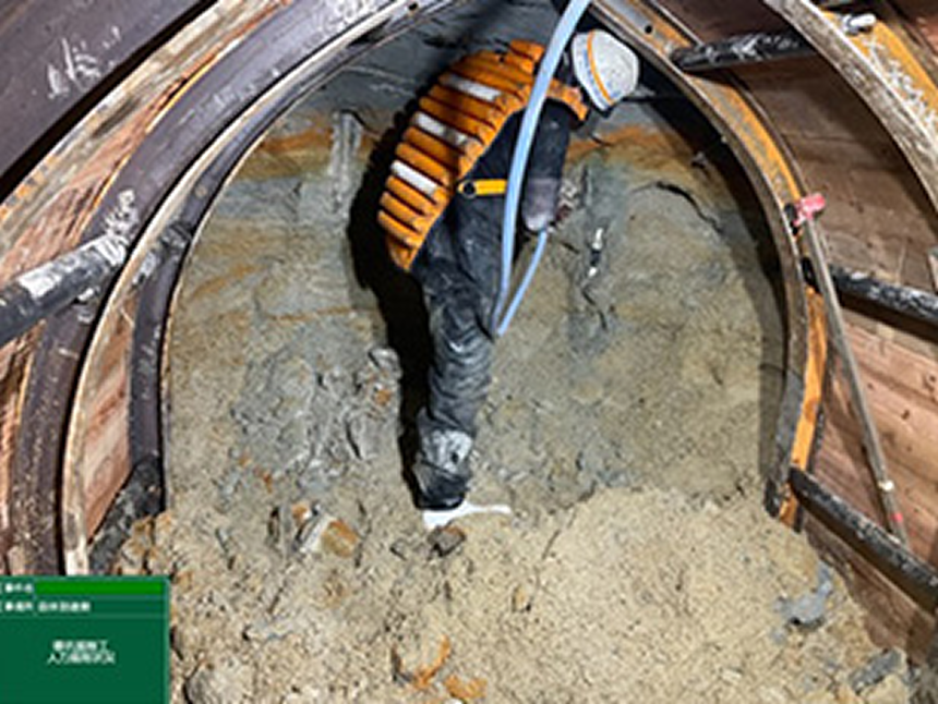 線路下横断構造物を構築するための施工法であるフロンテジャッキング工法、ESA工法等では、ボックスカルバートの掘進に先立ち、掘進精度の向上やけん引用PC鋼線配置のためにガイド導坑を構築し施工しています。ガイド導坑は、一般的に掘削箇所及び背面地山を薬液注入工にて地盤強化して山岳トンネル方式(鋼製支保工+木矢板)で施工しています。この工事では、土質や地下水状況等の要因によって地盤強化が十分に図られない場合、すかし掘りとなる先行掘削部は背面土砂の崩壊により労働災害が生じる恐れがあるため、掘削作業員は防護保護具等を着用し、作業を行っています。本工法は、このすかし掘りが生じないよう先行掘削部のトンネル背面に鋼製の防護シェルターを設置して安全にガイド導坑を構築する工法です。